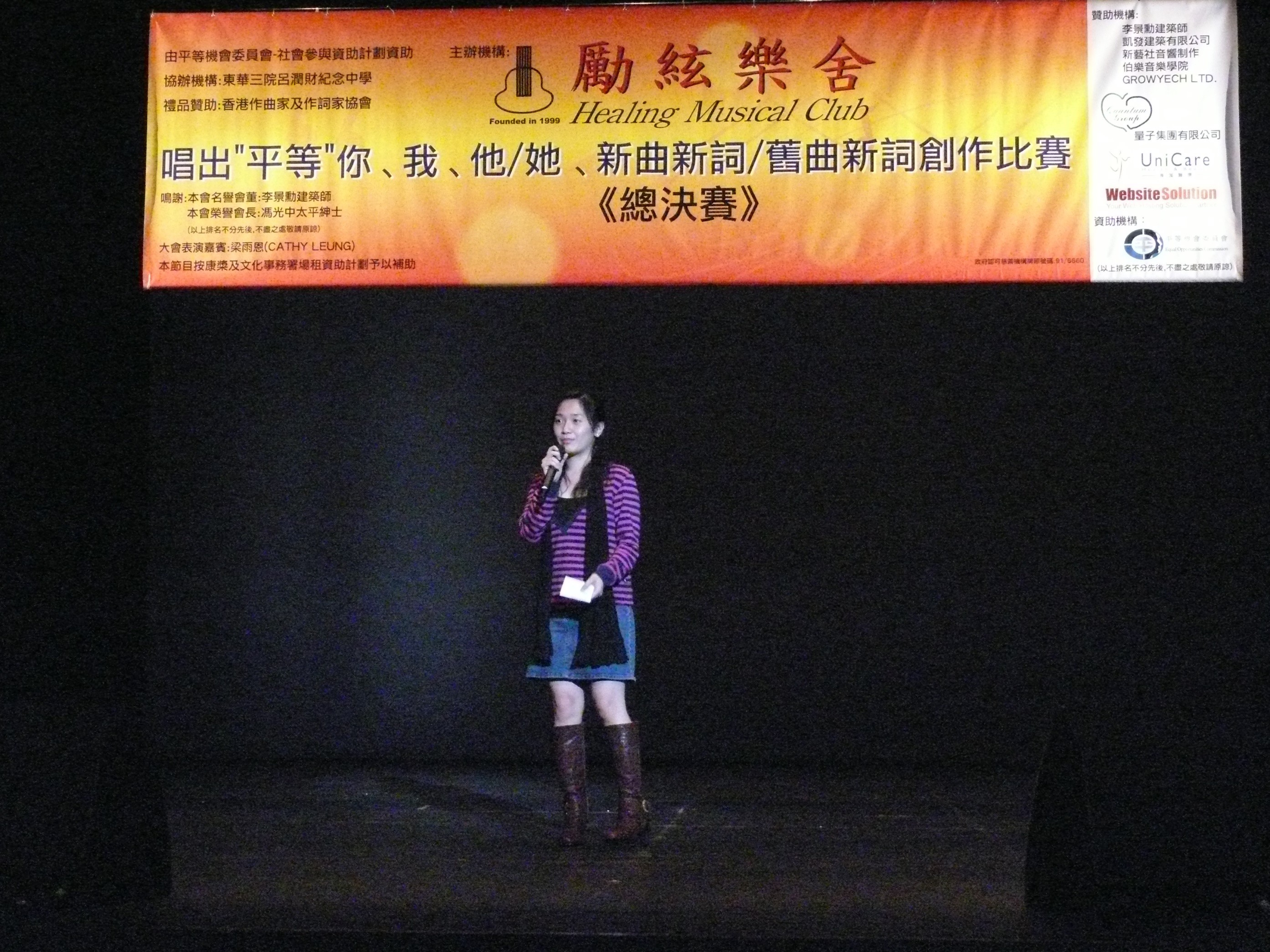 從各方面參予朋友的反影; 知道今次晚會活動十分成功, 雖則這個晚會是曲詞創作比賽, 但現場的氣氛猶如一個小型的演唱會之表演, 一剎間, 不論台上比賽者的獻唱, 台下觀眾的和應,都顯得非常緊湊, 加上出自參賽者的每首自創性的 "你、我、他" 立體三維創作歌曲 ; 個人之心路歷程, 獻唱前之深情分享等, 更有得獎者之真情落淚, 還有表演嘉賓的演出與及份量級之評判評審 ; 將參賽者之 "人人平等" 及 "家庭和諧" 的重要來個平等而公義的評選, 頒獎之後 ; 不論得獎與否大家都作一視同仁, 將人與人之間的 "平等" 關係在台上獻唱 "平等的愛" (本會自創)給晚會之觀眾 ; 及將晚會的氣氛推至整晚的高潮; 不論什麼 ! 什麼 ! 怎樣 ! 怎樣 ! 得獎與否大家都活現出一個和諧的信息和氣氛. 。 其實活動成功的背後是有賴大家的參予和投入, 而事前及現場義工們之默默耕耘和配合, 贊助商的支持, 禮品的贊助, 精彩節目的表演安排等. 才能達至今次成功的果實, 本會在這再次多謝義工們的幫忙 ; 各界的支持 ; 參賽者/學校同學之演出. 還有出席晚會之本會各位會員, 表演./主禮嘉賓之分享, 評審評判和工作人員等. 這一晚實在是一個意義深遠和難忘的晚上……。